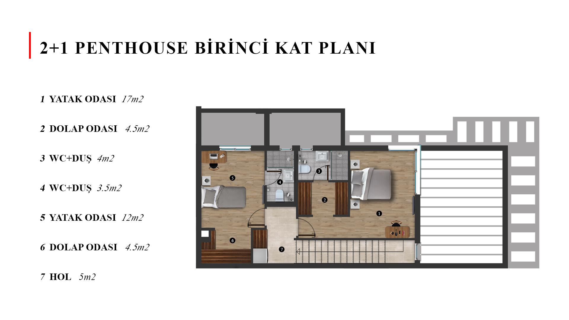 This 2+1 apartment offers a spacious and modern layout designed for comfortable city living. The unit typically includes two bedrooms, a bright open-plan living and dining area, two bathrooms, and a private balcony or terrace that allows natural light to fill the interior. Recent listings in the project show layouts ranging from approximately 85–96 m², making it ideal for families, couples, or long-term rental investment.