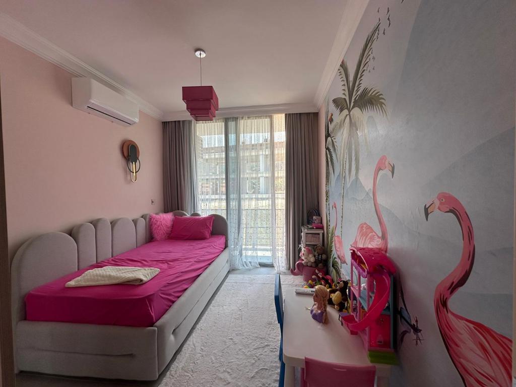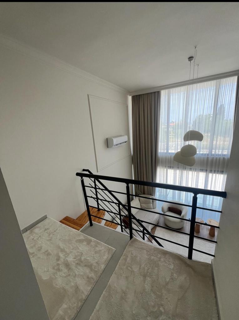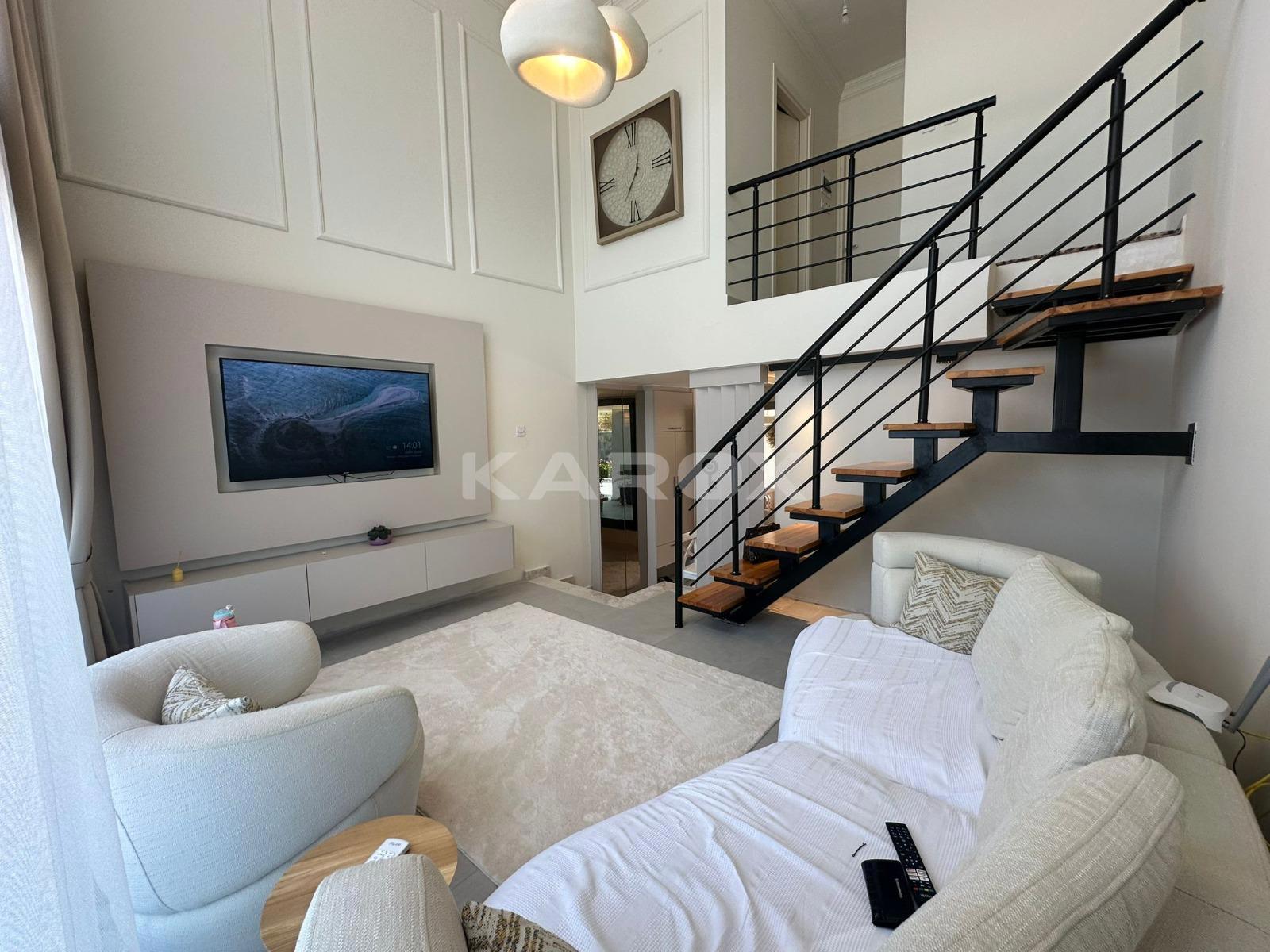 This 2+1 duplex penthouse offers a spacious and stylish two-level layout designed for modern Mediterranean living. The lower level typically features a bright open-plan living and dining area with a contemporary kitchen, while the upper level provides private bedroom spaces, creating a comfortable separation between living and sleeping areas. Large windows allow abundant natural light to fill the interior, and expansive terraces or rooftop areas offer beautiful views of the surrounding sea and mountain landscape.