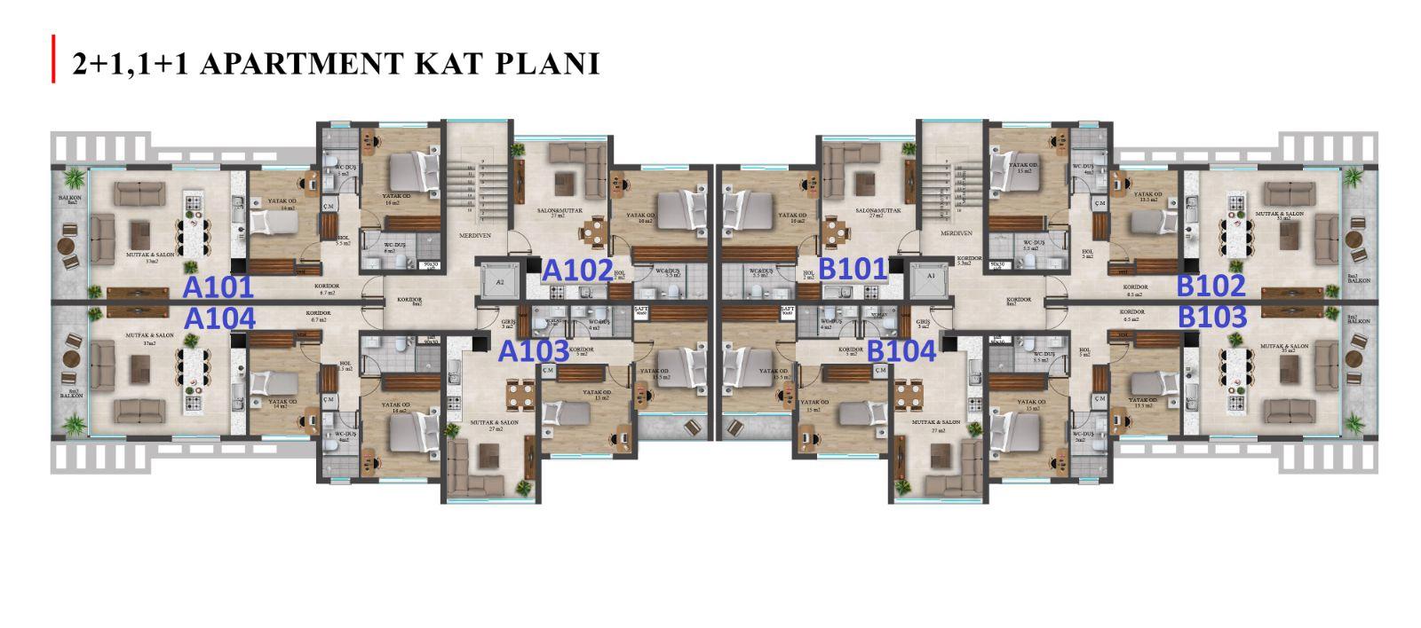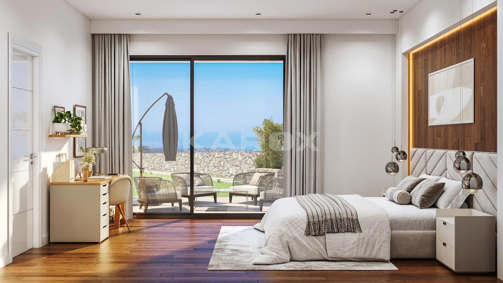 This 2+1 villa offers a comfortable and modern layout designed for relaxed Mediterranean living. The property typically includes two bedrooms, a spacious open-plan living and dining area, and large windows that allow natural light to fill the interior while showcasing the surrounding landscape. Private terraces and garden areas provide the perfect setting for outdoor dining, relaxation, and enjoying the island’s warm climate.