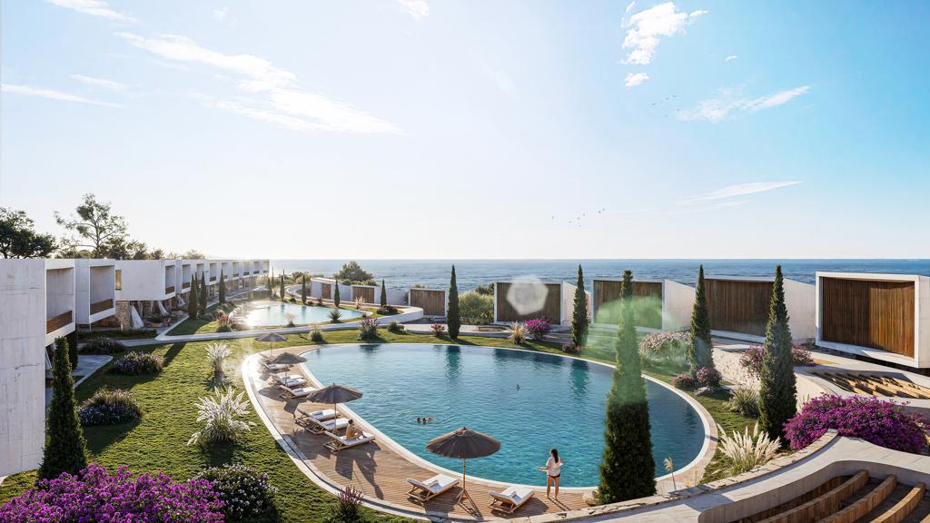 Puro is a modern residential development located in Esentepe within the Kyrenia region of Northern Cyprus. Positioned along the stunning northern Mediterranean coastline, the project offers panoramic sea and mountain views in a peaceful environment while remaining within convenient driving distance of Kyrenia city center and the renowned Korineum Golf & Country Club.