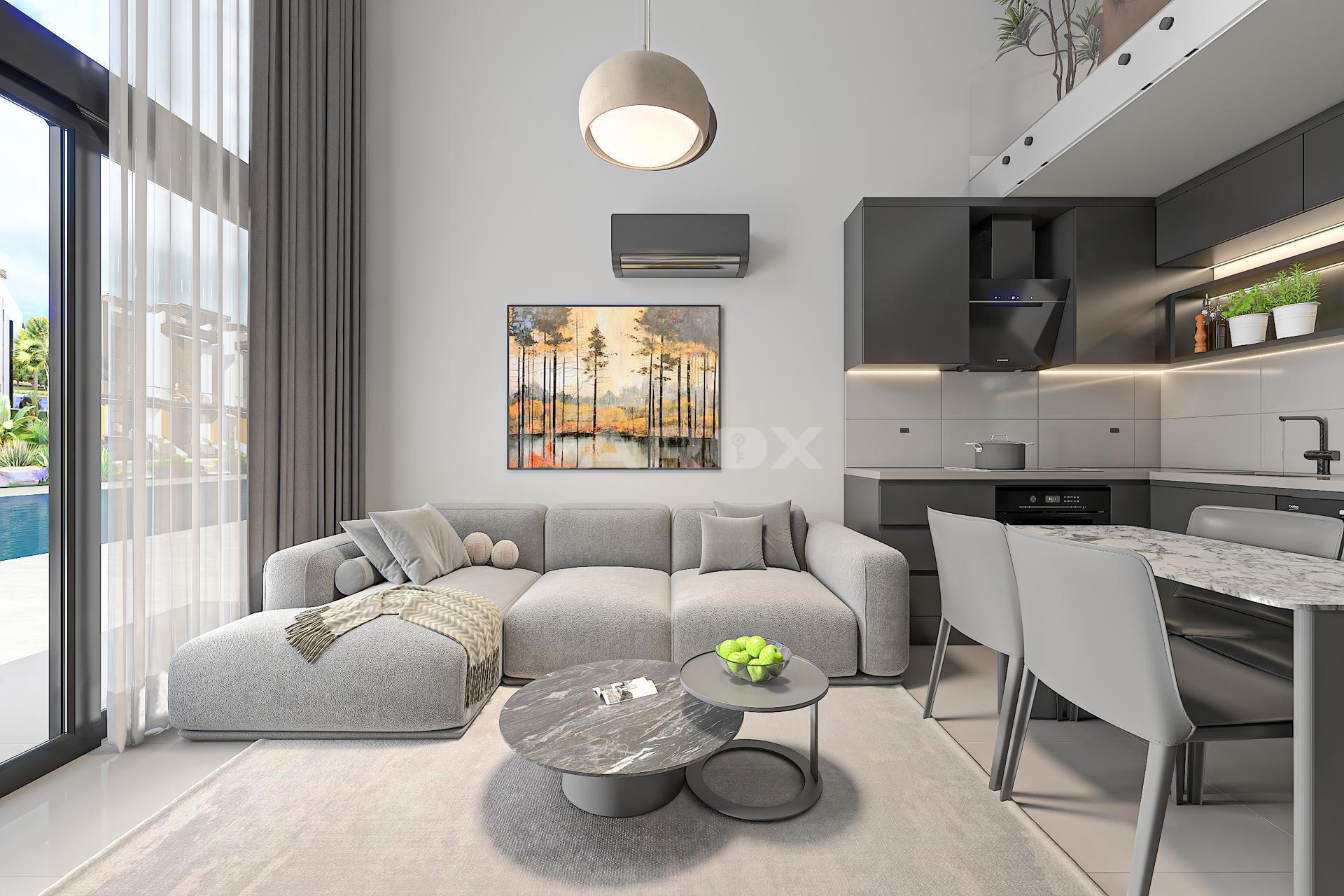 The complex is designed as a lifestyle-focused residential community featuring contemporary apartments with elegant architecture, spacious balconies, private gardens, and bright open-plan interiors. Capensis Homes includes a variety of unit types such as 1+1, 2+1 loft, and 3+1 apartments, making it suitable for both individuals and families. The modern design emphasizes comfort, natural light, and a seamless indoor-outdoor living experience.