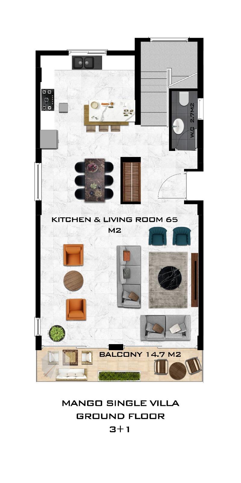 To mieszkanie 3+1 oferuje przestronny, dwupoziomowy układ, idealny dla komfortowego życia rodzinnego. Nieruchomość zazwyczaj obejmuje trzy sypialnie, jasny, otwarty salon z częścią jadalnianą oraz obszerne tarasy, które wpuszczają do wnętrza dużo naturalnego światła. Układ zapewnia wyraźny podział na strefy dzienną i nocną, co gwarantuje zarówno prywatność, jak i funkcjonalność odpowiadającą współczesnym potrzebom.