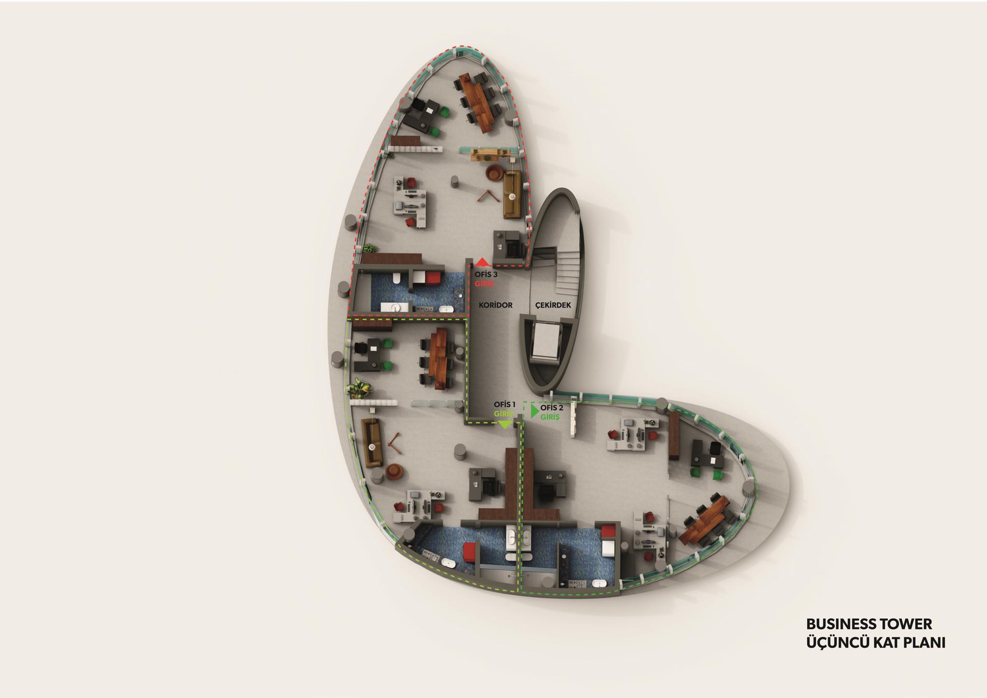 The development is designed as a modern high-rise complex combining commercial offices, business spaces, and premium residential units within one integrated urban concept. Contemporary architectural design, spacious layouts, panoramic city and sea views, and high-quality finishing materials create a professional and luxurious environment suitable for investors, business owners, and residents.